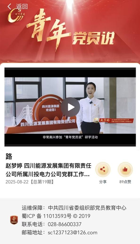 近期,四川省委組織部舉辦的“青年黨員說(shuō)”研學(xué)活動(dòng)正在四川黨建官網(wǎng)等平臺(tái)集中展播。省國(guó)資委黨委共推薦10名青年黨員代表圍繞“學(xué)習(xí)新思想,爭(zhēng)當(dāng)改革先鋒”為主題,談體會(huì)、談感悟。其中,由四川能源發(fā)展集團(tuán)上報(bào)、川投能源推薦的作品《路》,通過(guò)講述“兩路”精神的歷史內(nèi)涵,結(jié)合川投電力腳基坪電廠震后緊急搶險(xiǎn)、天彭電力鳳鳴湖水庫(kù)飲水廊道清淤、玉田電廠為涼山州彝族村民送水送電等鮮活事例,展現(xiàn)能源人在逆行搶險(xiǎn)、為民服務(wù)和民族團(tuán)結(jié)中的責(zé)任擔(dān)當(dāng),號(hào)召新時(shí)代國(guó)企人賡續(xù)“兩路”精神,汲取奮進(jìn)力量,展現(xiàn)了能源國(guó)企的使命擔(dān)當(dāng)。