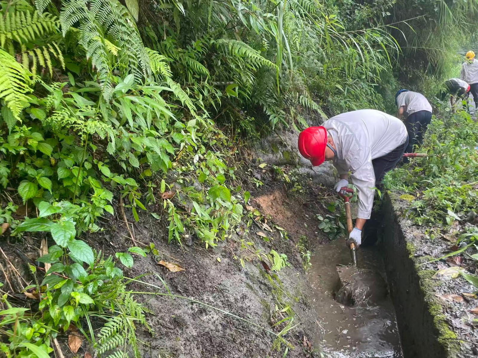 在暴雨預(yù)警拉響的第一時(shí)間,這支黨員先鋒隊(duì)就踏上了巡查征程。當(dāng)發(fā)現(xiàn)排水溝淤積隱患時(shí),副廠長(zhǎng)、老黨員張坤祥二話不說(shuō),就跳進(jìn)了滿是淤泥的排水溝進(jìn)行清淤,他說(shuō):“淤泥增加1厘米,防汛壓力就重1分!”他的話語(yǔ)樸實(shí)無(wú)華,卻道出了一名共產(chǎn)黨員的責(zé)任與擔(dān)當(dāng)。暴雨如注時(shí),值守人員頂著傾盆大雨沖進(jìn)廠房,在電閃雷鳴中對(duì)關(guān)鍵設(shè)備進(jìn)行雨中特巡,雨水順著安全帽檐流進(jìn)衣領(lǐng),浸透了工作服,卻澆不滅他們守護(hù)機(jī)組安全的堅(jiān)定信念。他們用沾滿淤泥的雨靴和浸透雨水的工裝,在防汛一線筑起了一道堅(jiān)不可摧的“紅色堤壩”。截至目前,腳基坪電廠累計(jì)開展12次雨前、雨中、雨后特巡,清理淤積點(diǎn)13次。