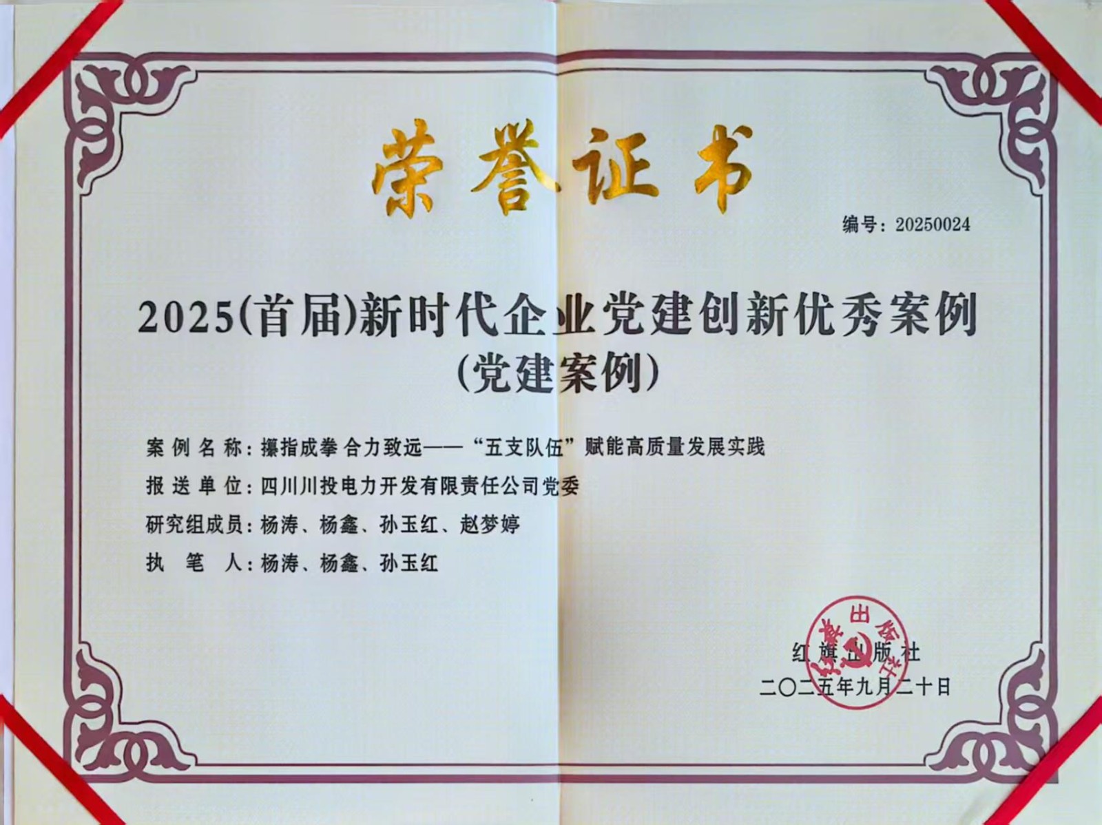 9月20日,由紅旗出版社主辦的2025(首屆)新時代企業(yè)黨建經驗交流會暨企業(yè)黨建創(chuàng)新優(yōu)秀案例發(fā)布儀式在北京舉行。川投能源所屬川投電力黨委申報的案例《攥指成拳 合力致遠——“五支隊伍”賦能高質量發(fā)展實踐》,從1400余家企業(yè)中脫穎而出,成功入選本屆黨建創(chuàng)新優(yōu)秀案例。