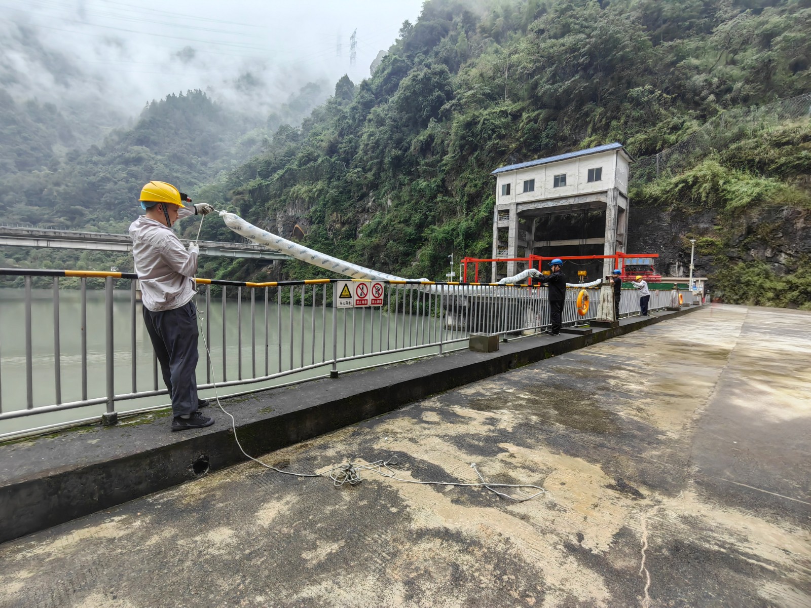 本次演練背景設(shè)定為電站大壩2#泄洪閘左側(cè)齒輪箱突發(fā)漏油,約50升齒輪油濺落至庫區(qū)水面并擴散,值班人員發(fā)現(xiàn)險情后立即啟動應(yīng)急響應(yīng)。中控室迅速協(xié)調(diào)上下游鍋浪蹺、匯溪電廠調(diào)整出力流量并協(xié)助布設(shè)攔油設(shè)施;運行組與應(yīng)急搶險組攜帶吸油氈、攔油索等器材趕赴現(xiàn)場,對漏油點進(jìn)行封堵,同時在閘門前和水面關(guān)鍵區(qū)域鋪設(shè)攔油繩,防止污染擴散;后勤保障組全程待命,確保物資供應(yīng)和人員安全。經(jīng)過30分鐘緊張有序的處置,油污被徹底清理,庫區(qū)水質(zhì)未受影響,演練圓滿完成。