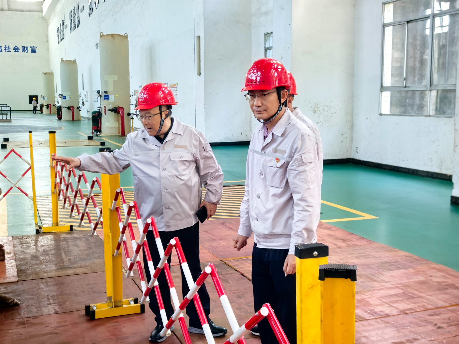 蔡承德一行深入生產(chǎn)一線,重點檢查了大壩、防汛設施運行狀況及發(fā)電機組、主變壓器等核心設備工況,詳細核查了設備巡檢記錄、隱患治理臺賬和應急預案等管理資料,并實地督導110KV出線間隔等關鍵設施的安全防護措施落實情況。在檢查過程中,蔡承德詳細詢問了各電廠在“雙節(jié)”期間的保供方案、人員值班安排及應急物資儲備情況,對各電廠前期開展的設備隱患整改工作給予肯定。