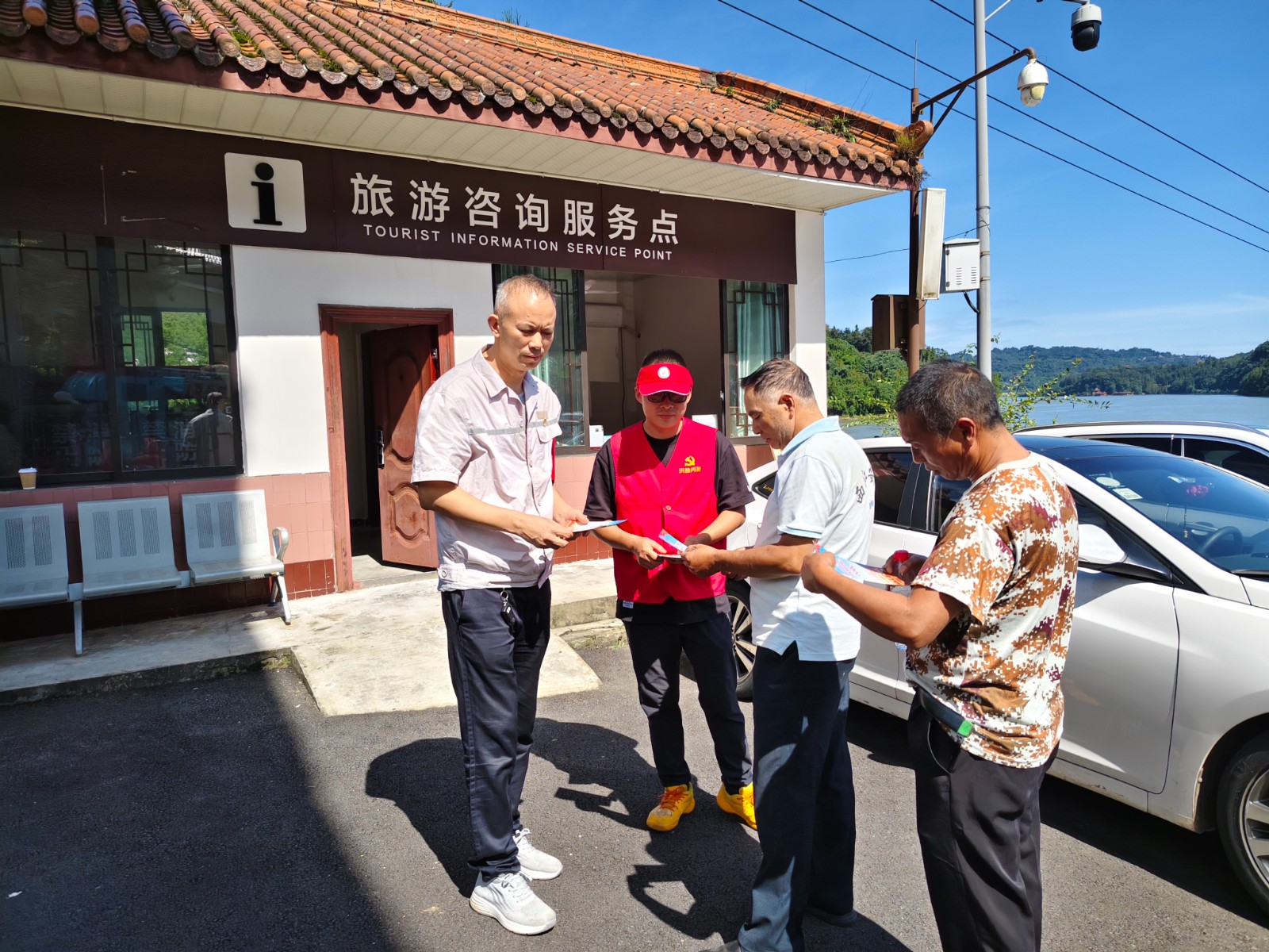 活動現(xiàn)場,志愿者耐心地為游客提供景區(qū)景點、游覽路線、交通信息等咨詢服務(wù),幫助游客規(guī)劃合理的游覽行程,確保游客能夠順利、愉快地游覽景區(qū)。在景區(qū)停車場區(qū)域,協(xié)助景區(qū)工作人員維持交通秩序,引導(dǎo)游客有序停車,保障了停車場的暢通和游客的安全。黨員志愿者們還積極開展《中華人民共和國反有組織犯罪法》宣傳活動。向他們發(fā)放宣傳手冊,提高游客對有組織犯罪的認(rèn)識和防范意識,引導(dǎo)廣大游客自覺遵守法律法規(guī),共同維護社會和諧穩(wěn)定。